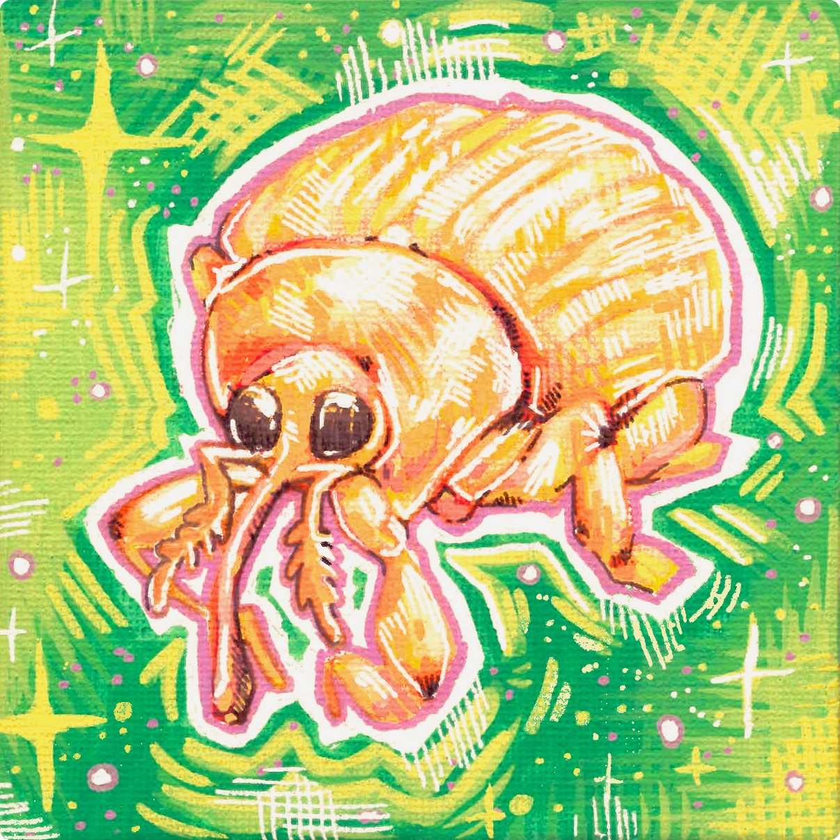 Weevil (Curculionioidea curculiondae) March 2026Materials: Acrylic paint markers on 4 × 4 in canvas panel